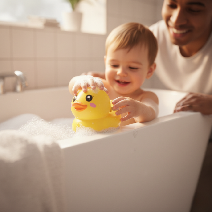 Badsplash gör badstunden rolig, lugn och helt utan batterier. Vrid upp, släpp i vattnet och se den sprattla fram – perfekt för att träna grepp, hand-öga-koordination och vattenvana. Den rundade, barnsäkra designen är lätt att hålla i, enkel att skölja av och byggd för många plaskiga äventyr.