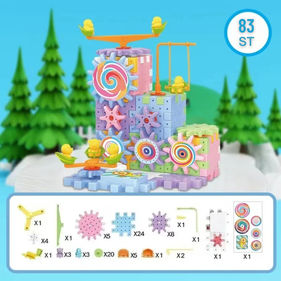 Gearlab förenar pedagogisk STEM-lek med trygga material och stark motor-/magnetkoppling. Barnet bygger fritt, ser kuggarna snurra och tränar logik, problemlösning och finmotorik – helt skärmfritt. Robust ABS, släta kanter och vattenbaserade färger ger trygg lek som håller.